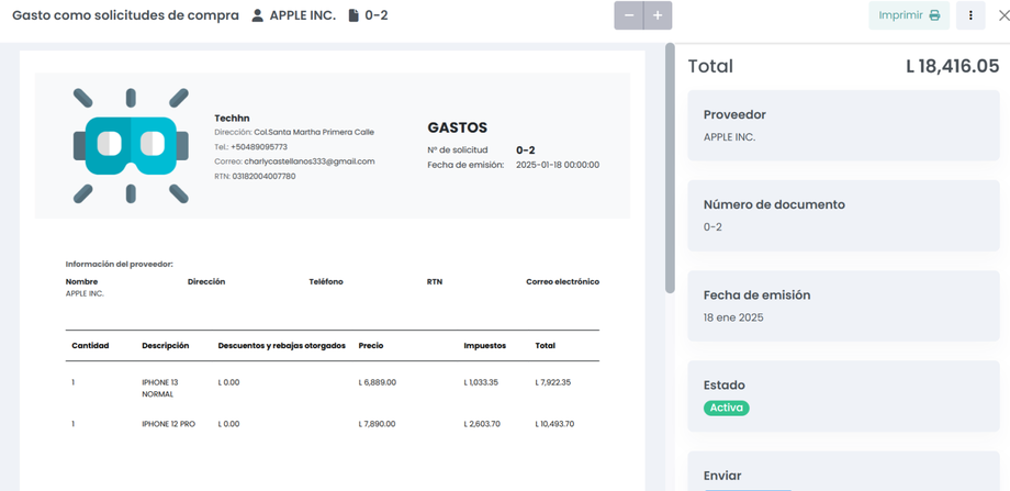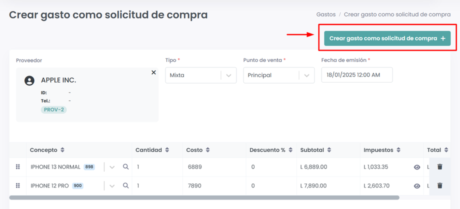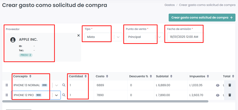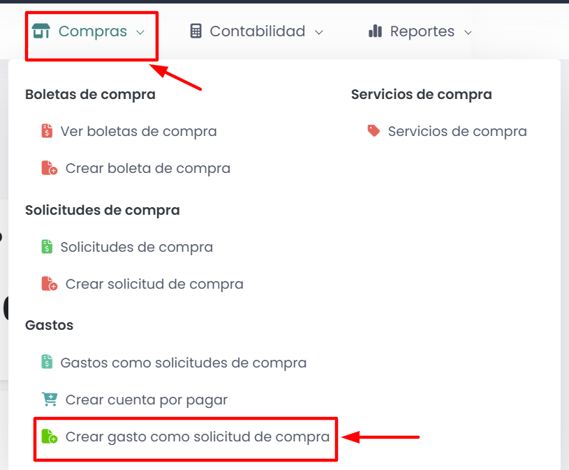 - Ingresamos al módulo de Compras → Crear Gastos como Solicitud de Compra