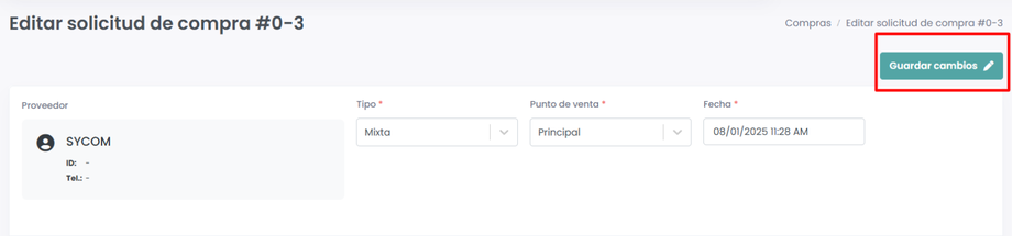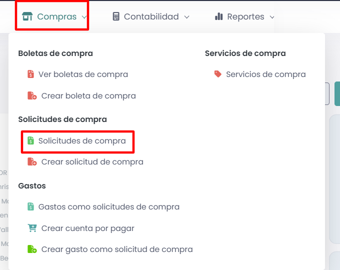 Si desea saber como crear una solicitud de compra, puede visitar la siguiente guía: Solicitud de compra.