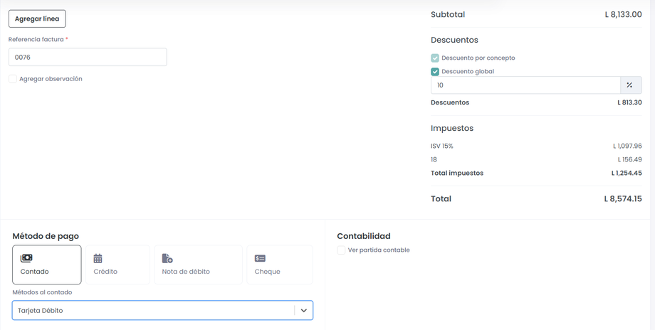 - Si se desea aplicar descuento a todos los ítems, hacemos clic en el botón de Descuento Global.