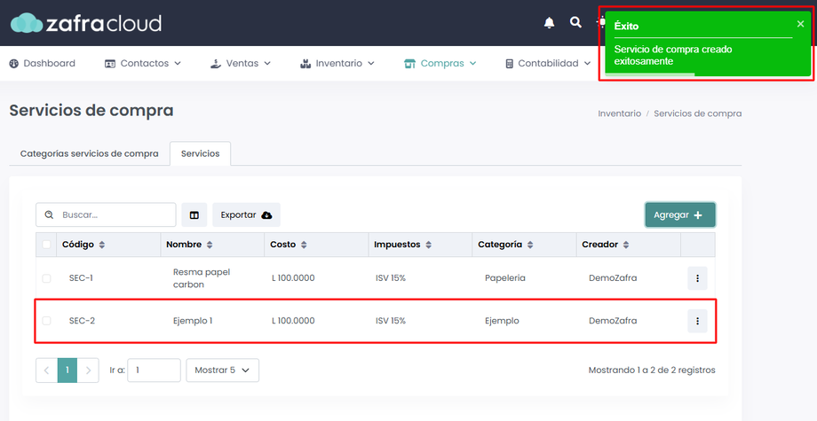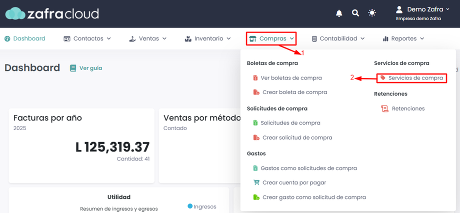Ingresaremos al módulo de Compras -> Servicios de compra.