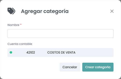 Tendremos la siguiente ventana en la cual primero deberemos crear la categoría servicios de compra presionando sobre el botón de “Agregar+”.