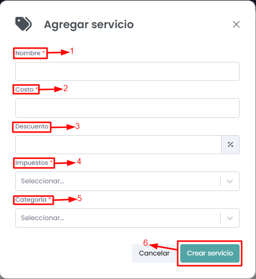 - Impuestos: Debe ingresar el impuesto correspondiente de sus servicios.