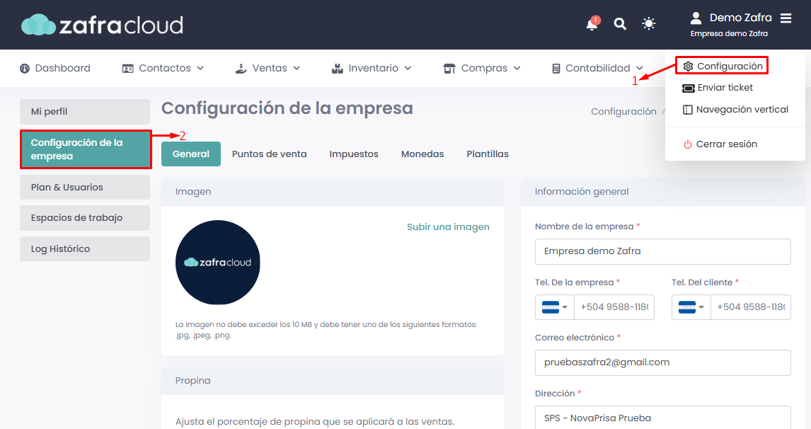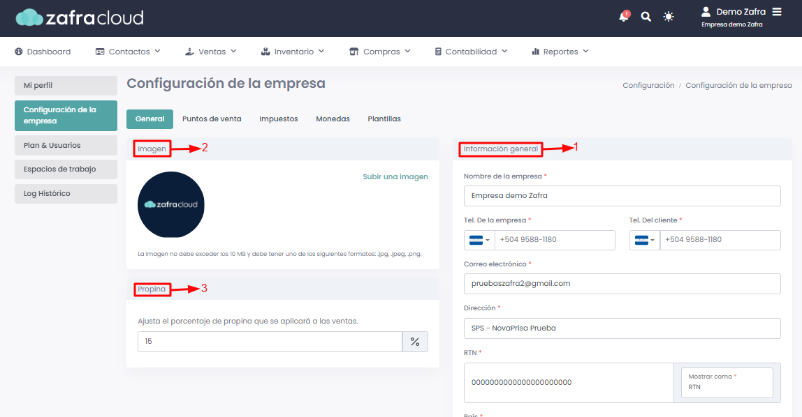 • Nombre de la Empresa: Podremos modificar el nombre de nuestra empresa.