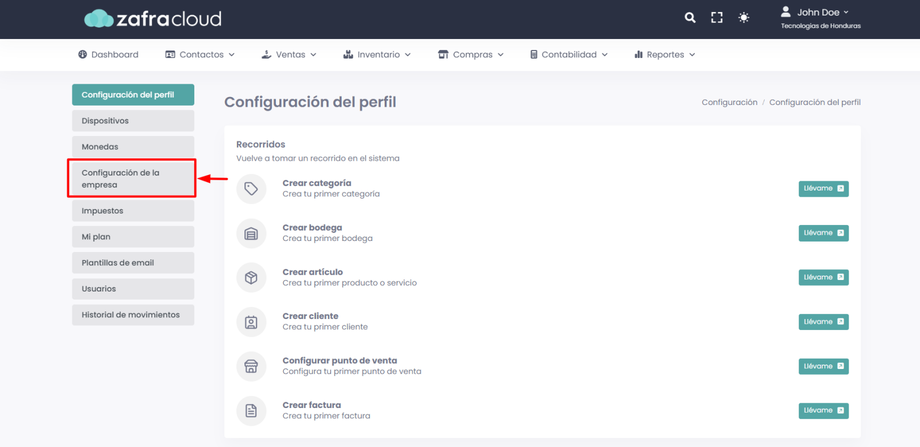 - Ingresaremos a Configuraciones → Configuración de la empresa.