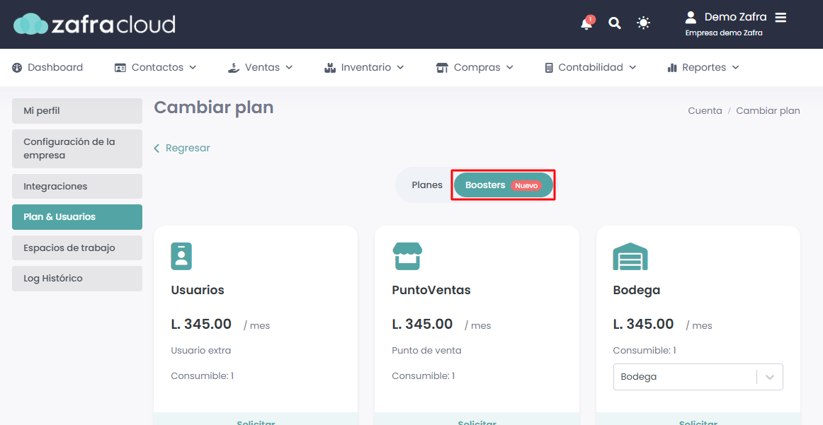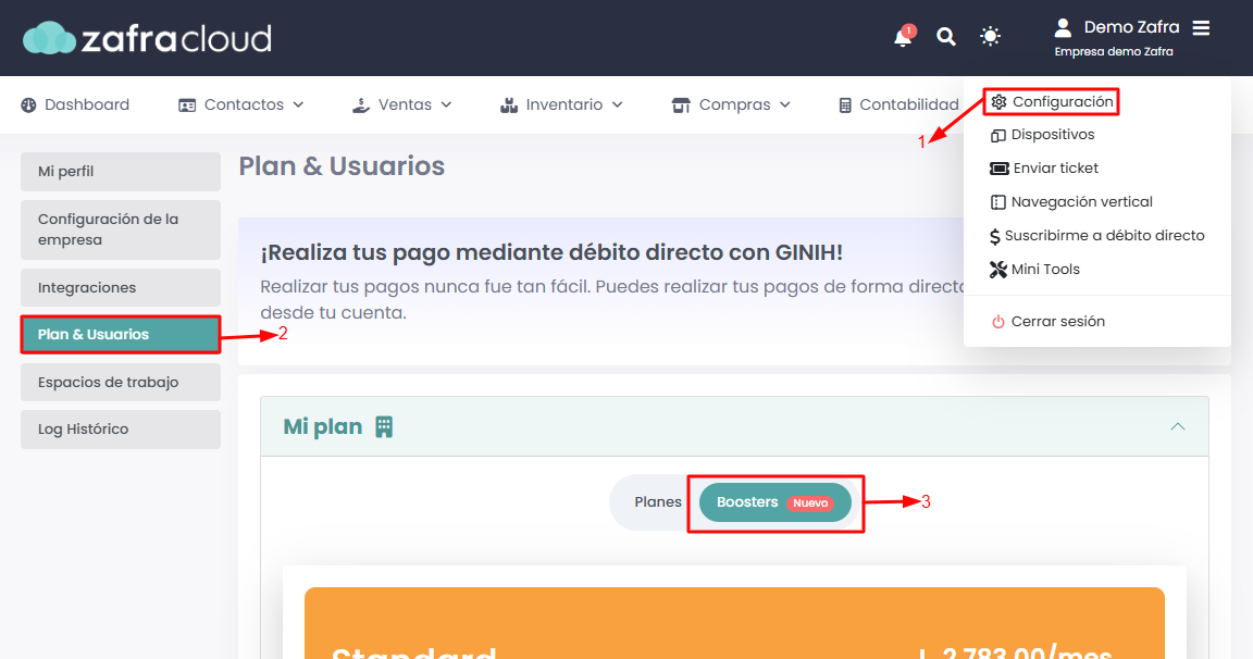 Ingresaremos a Configuración → Mi plan → Booster