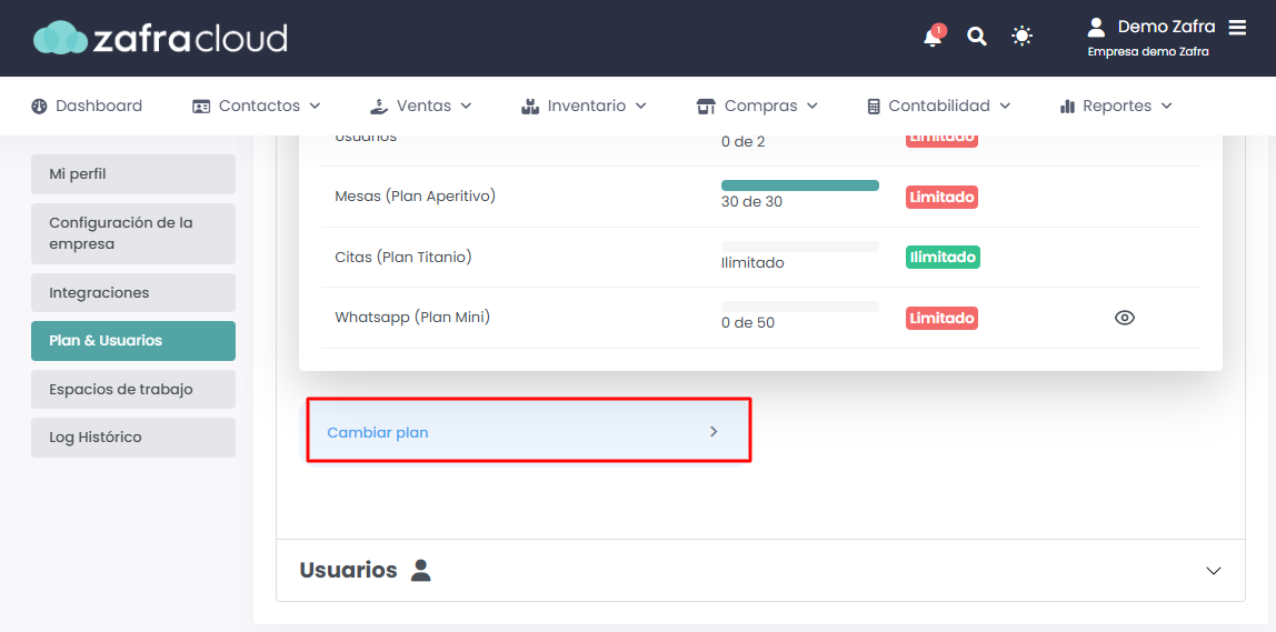 Una vez dentro, haremos clic sobre “Cambiar plan” ubicado al final.