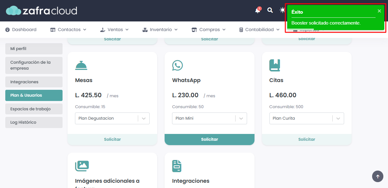 Una vez completado el proceso, el sistema nos indicará que el booster fue solicitado con éxito.