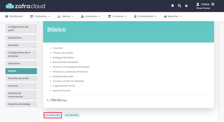 Una vez dentro, nos dirigiremos a la parte final y daremos sobre “Cambiar plan”