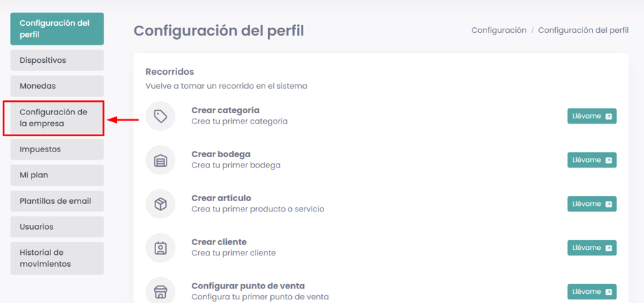 - Ingresar a Configuraciones → Configuraciones de la Empresa