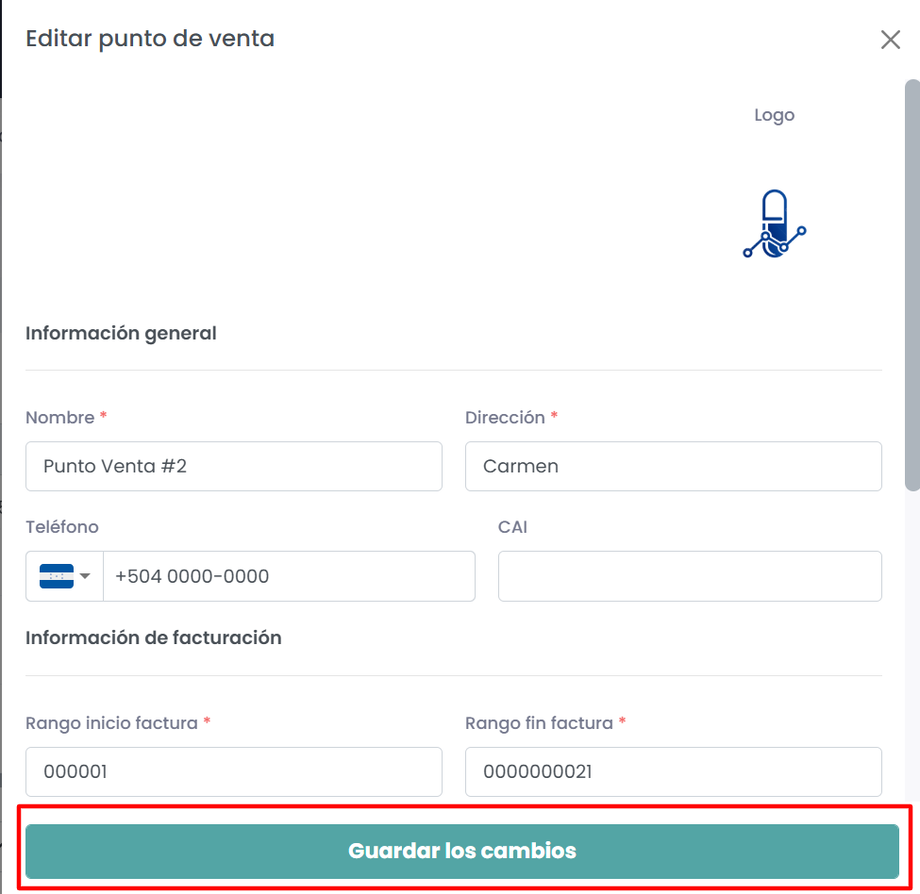 Para cambiar el logo del punto de venta debe seguir los siguientes pasos: