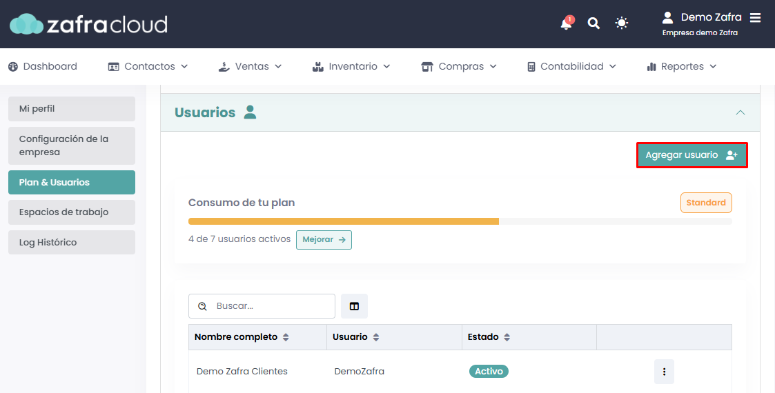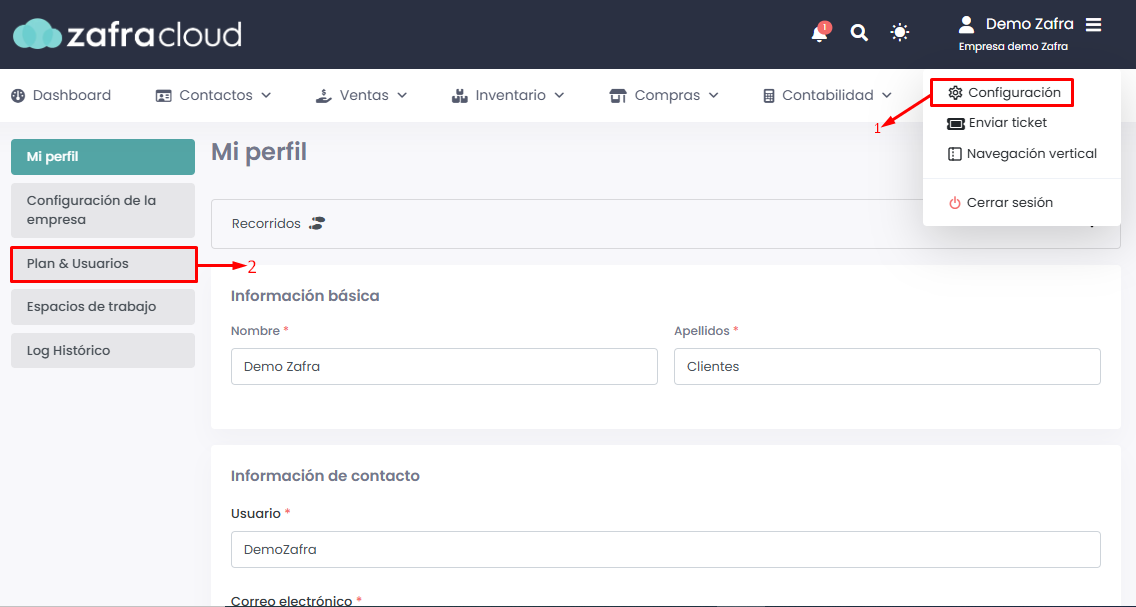 Ingresaremos a Configuración → Plan & Usuarios