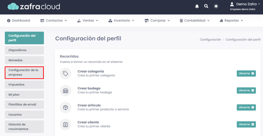 Ingresaremos a Configuración ⇾ Configuración de la empresa.
