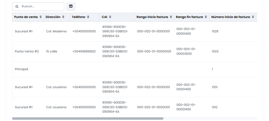 Punto de venta: Ubicación donde se realizan las ventas y se emiten facturas.