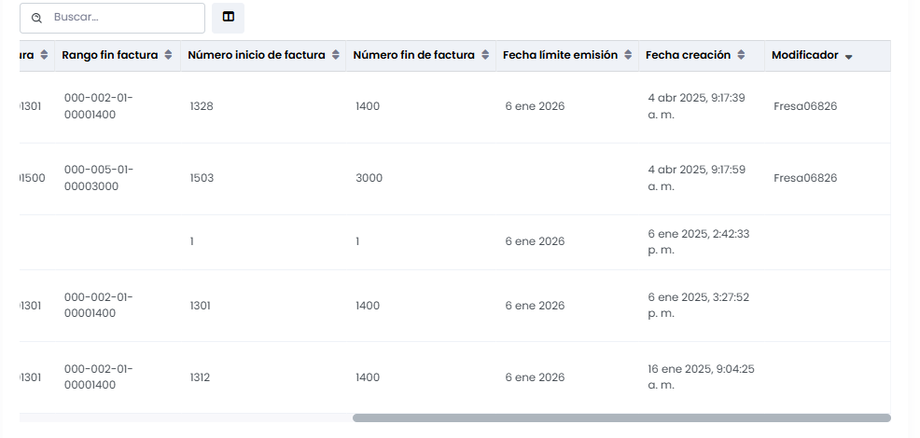 Número inicio de factura: Número con el que comienza la secuencia de facturación dentro del rango autorizado.