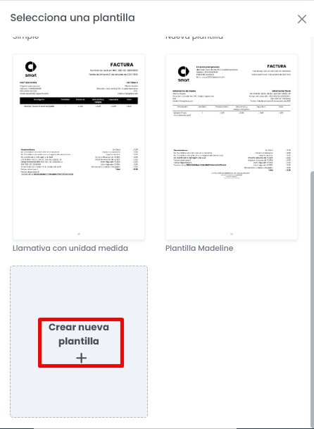 Aquí se nos desplegará una ventana con las plantillas que ya tenemos predeterminada y para crear una daremos clic en Crear nueva Plantilla.