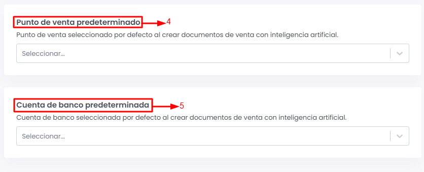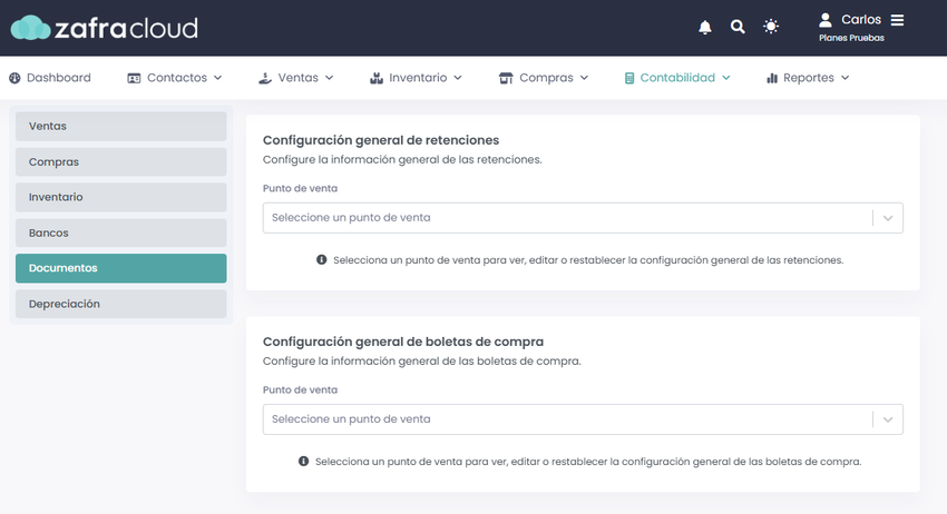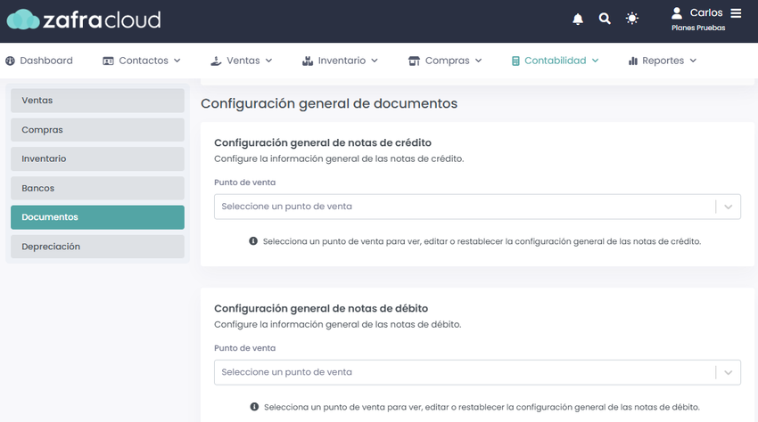 Para realizar la configuración general de documentos deberemos asignarle un punto de venta y luego completar la siguiente información: