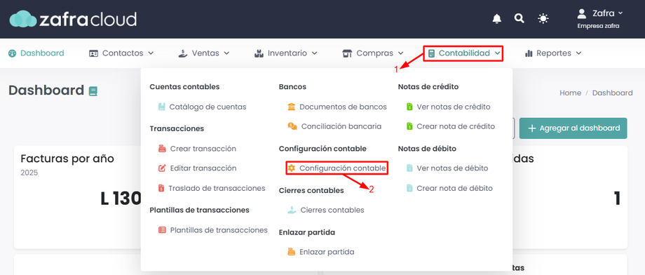 Ingresaremos al módulo de Contabilidad -> Configuración contable.