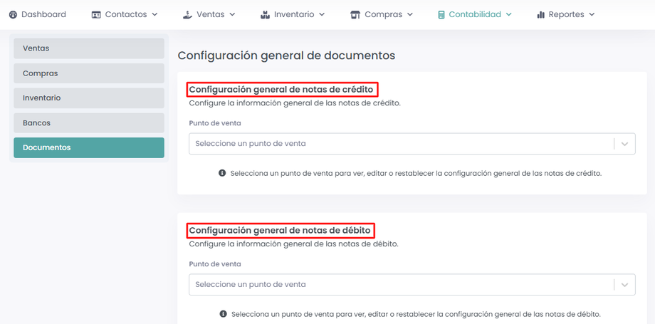 - Clientes: Seleccionaremos el cliente al cual configuraremos la nota de débito.
