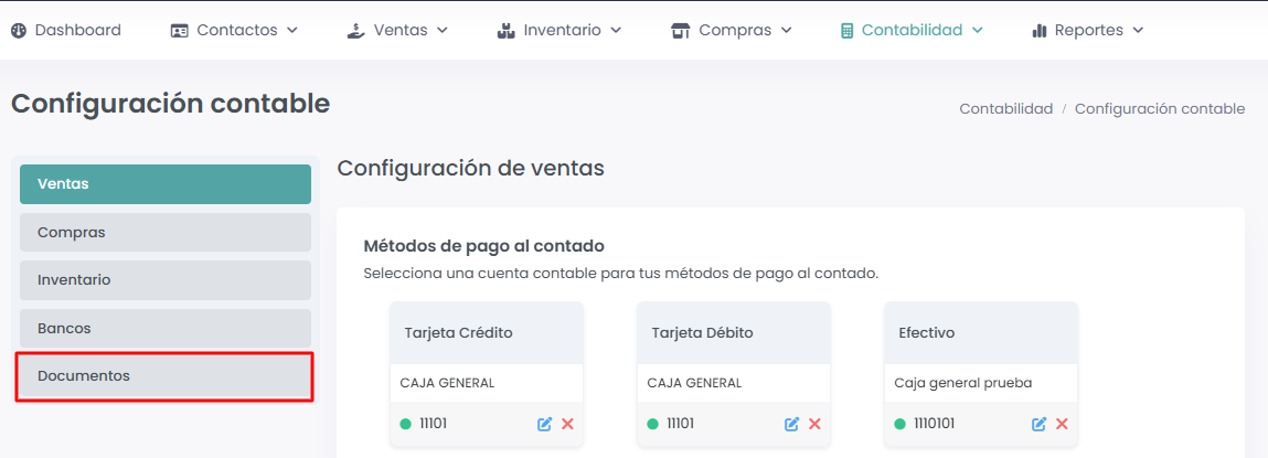 Ingresaremos al módulo de Contabilidad → Configuración contable