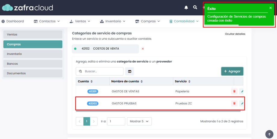 Se nos mostrará un mensaje indicando que los cambios fueron realizados de forma exitosa.