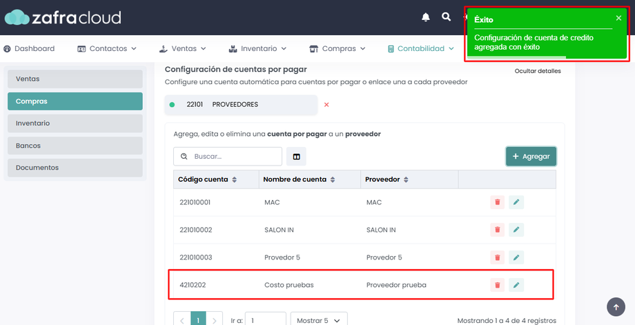 Se desplegará la siguiente lista y si deseamos agregar una nueva CXP daremos sobre el botón de “+Agregar”.