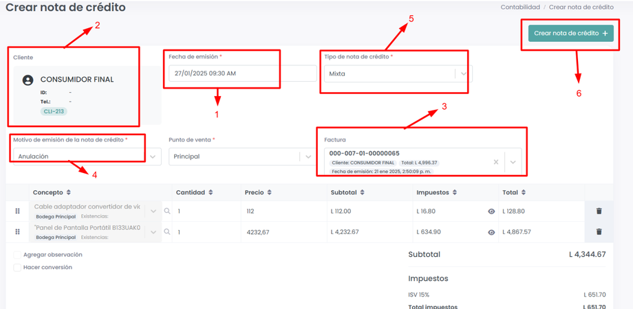 Para poder crear una nota de crédito debemos seguir los siguientes pasos: