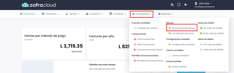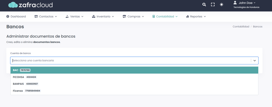Ingresamos al módulo de Contabilidad → Documentos Bancos