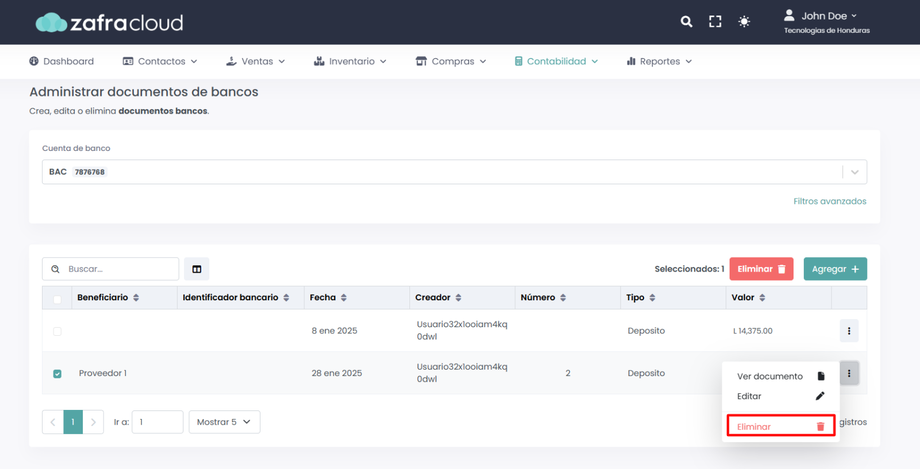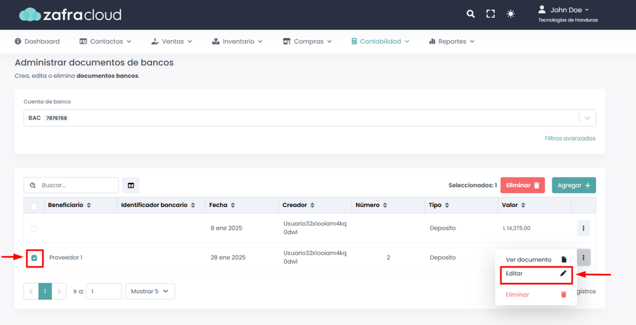 Te explicaremos los pasos a seguir para eliminar o editar un documento banco en Zafra Cloud.
