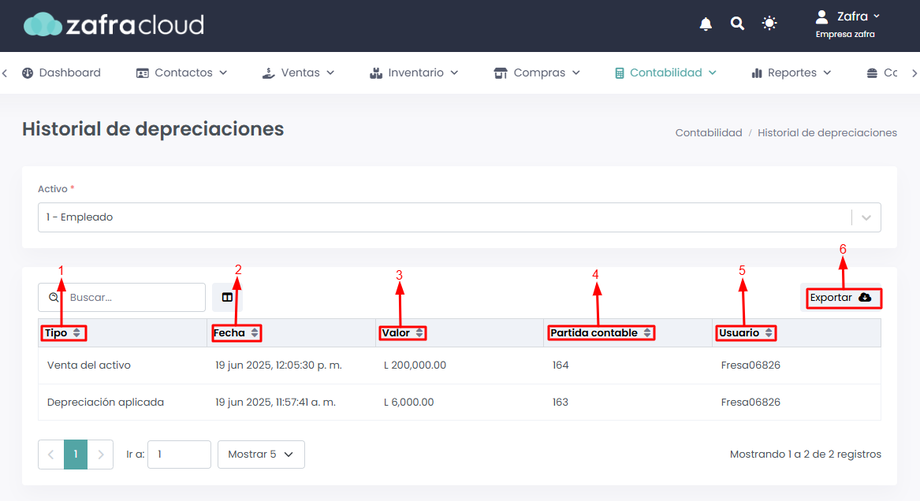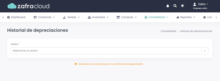 Te mostraremos los pasos para visualizar el Historial de depreciaciones.