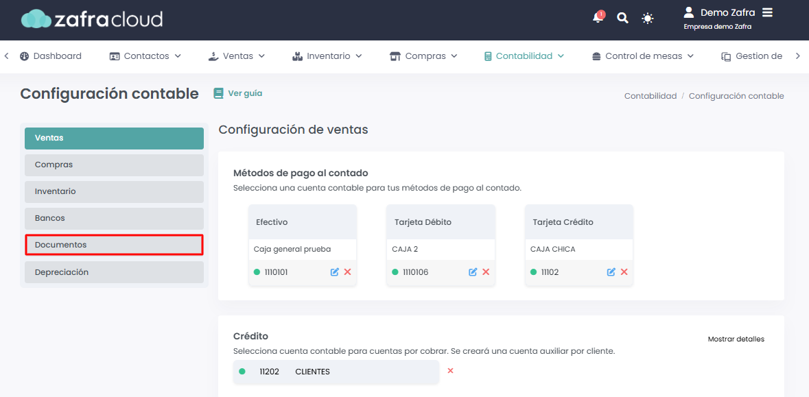 Tendras la configuración general de documentos, selecciona al que desees añadirle el subrango en cola.