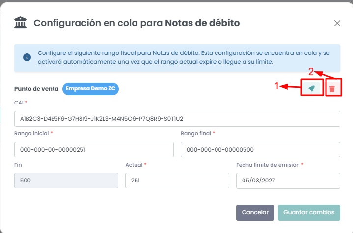 Un subrango en cola es parte del rango autorizado de documentos fiscales que aún no se ha utilizado y está disponible para emitir. Se coloca para que una vez finalizado el rango anterior este se coloque de forma automatica.