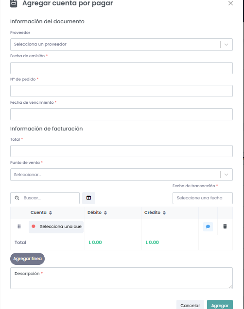Desde el botón Agregar CXP+ podremos crear una cuenta por pagar de forma directa, solo deberemos los datos correspondientes.
