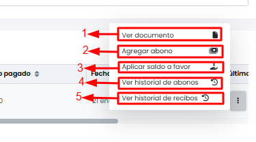 Ver historial de recibos: Visualizarás el historial de recibos por abonos.