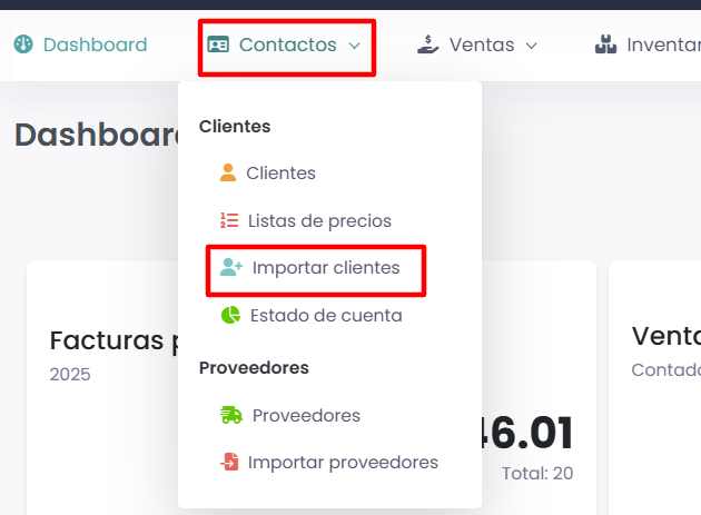 - Ingresaremos al módulo de Contactos → Importar clientes