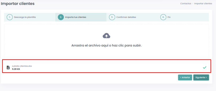 - Luego guardaremos los datos de nuestra hoja de cálculo de Excel, siguiente paso sería dar clic en siguiente y subiríamos el archivo Excel a esa ventana y seguidamente daremos clic en siguiente.