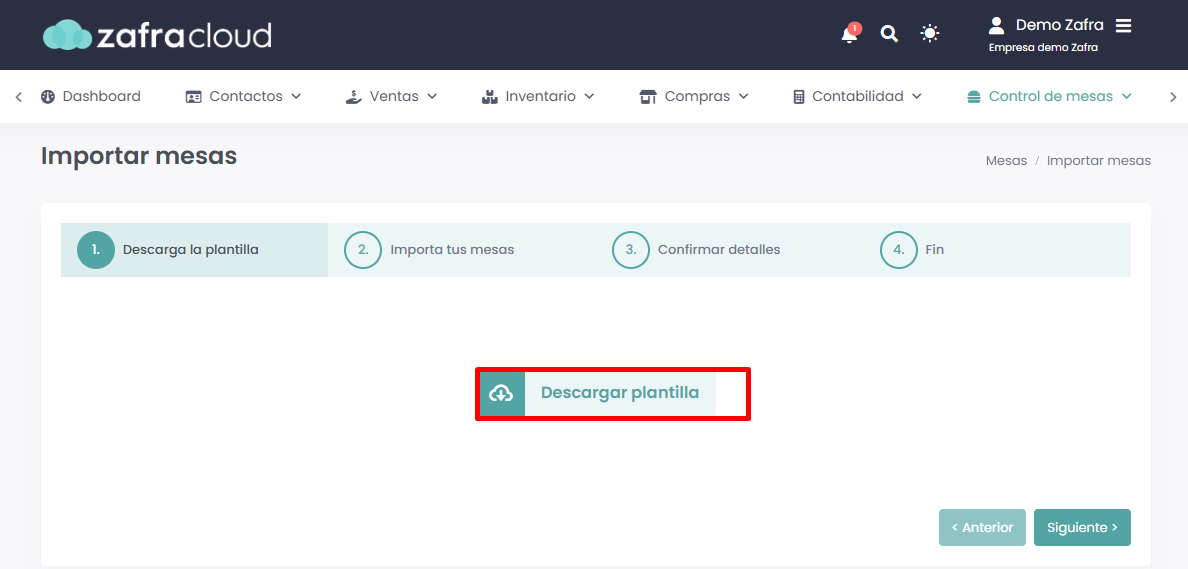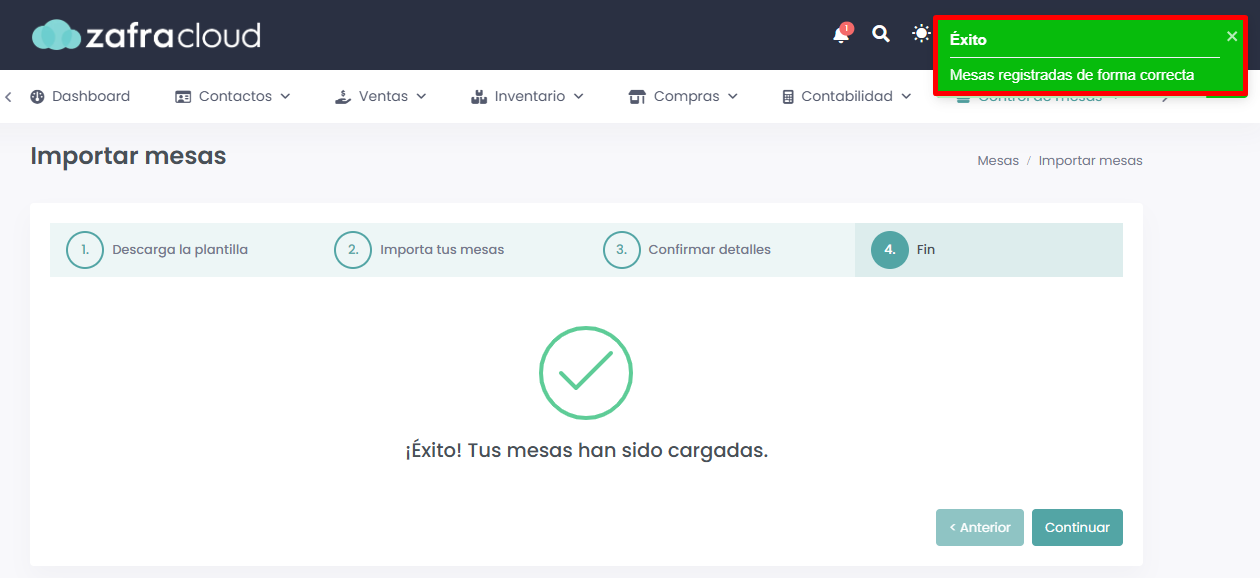 El sistema Zafra Cloud nos permite realizar registros de mesas de manera masiva. Para poder realizar una subida masiva debemos seguir los siguientes pasos: