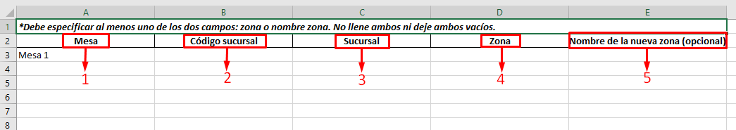 Nombre de la nueva zona (opcional): Campo opcional para crear y asignar una nueva zona en caso de que no exista previamente.
