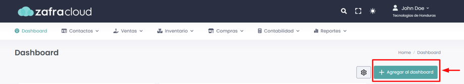 - Primeramente, para ir a ver los widgets le damos clic al botón de Agregar al Dashboard