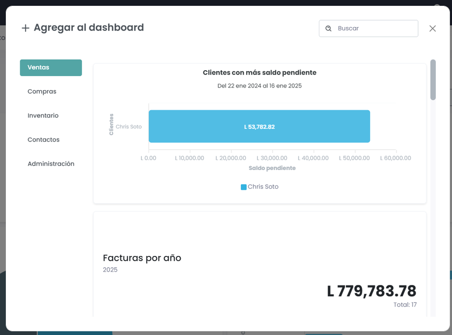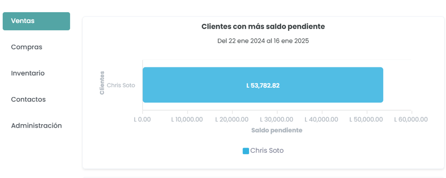 Facturas vencidas: Muestra el total de las facturas vencidas en el mes, y también muestra el total de facturas vencidas en el año.
