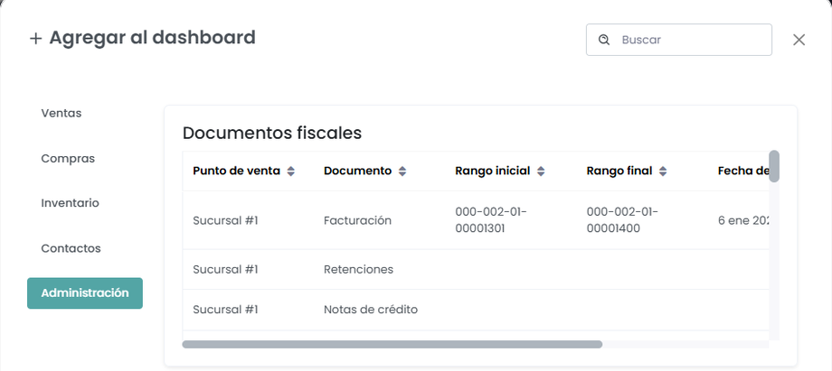 Documentos fiscales: Muestra facturas, notas de crédito, notas de débito, recibos, y otros comprobantes fiscales digitales.