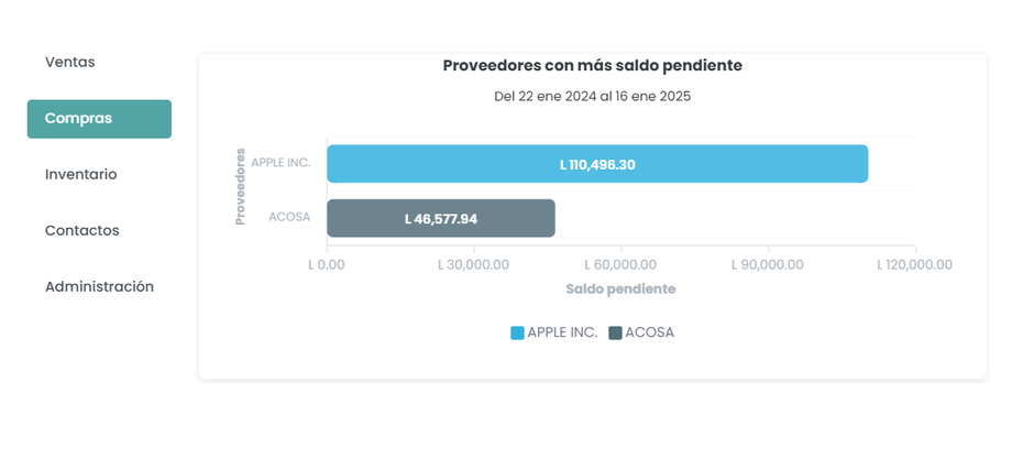 Proveedores con saldos pendientes: Muestra los proveedores con mayores saldos pendientes que se deben pagar en el mes actual.