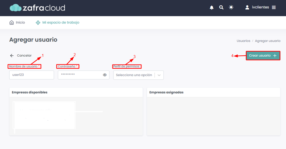 - Perfil de permisos (opcional): Podremos seleccionar un perfil de permisos brindado por las empresas.