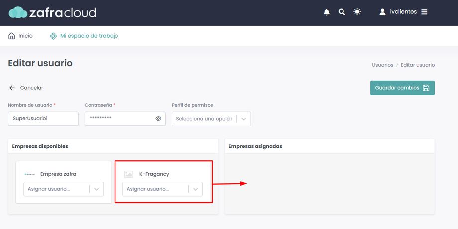 - La arrastraremos hasta la sección “Empresas asignadas”.