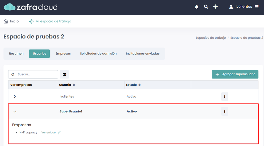 - Visualizaremos la empresa que le deseamos al superusuario.