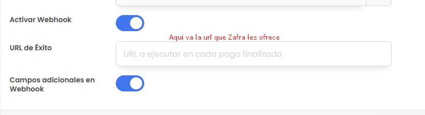 En la parte de abajo, deberás activar el webhook junto a sus campos adicionales.