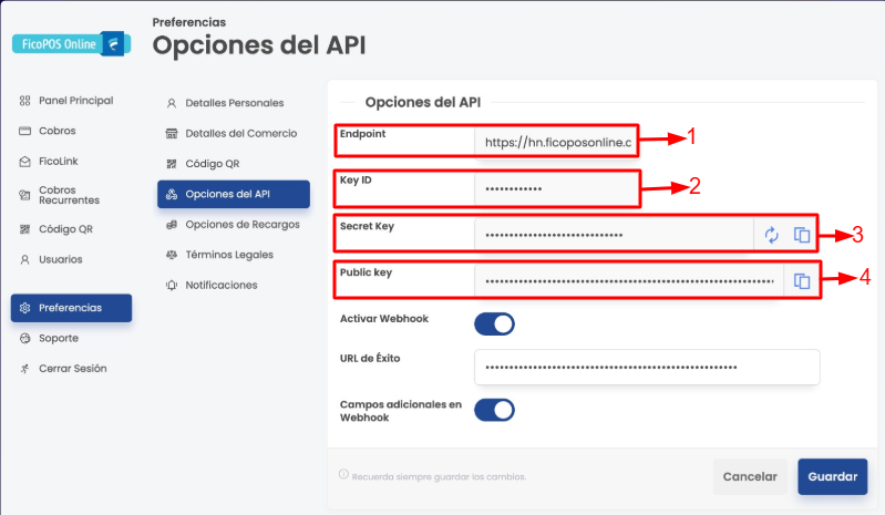 Aquí encontrarás 4 campos correspondientes a tus keys que colocarás en Zafra Cloud: