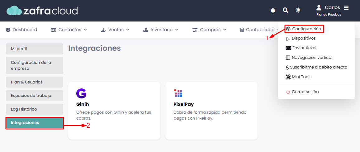 Ingresarás a Configuración → Integraciones