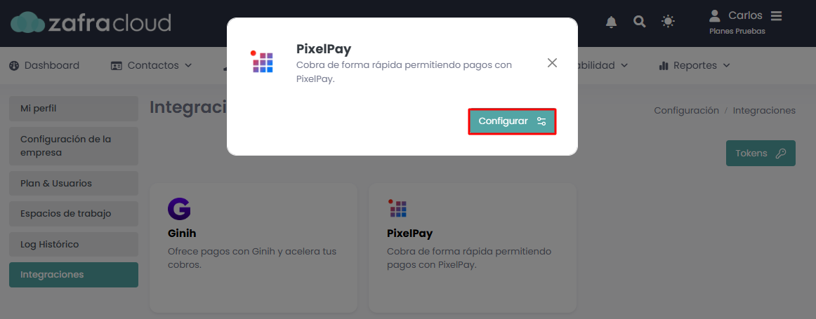 Seleccionaremos PixelPay y presionaremos sobre “Configurar”.
