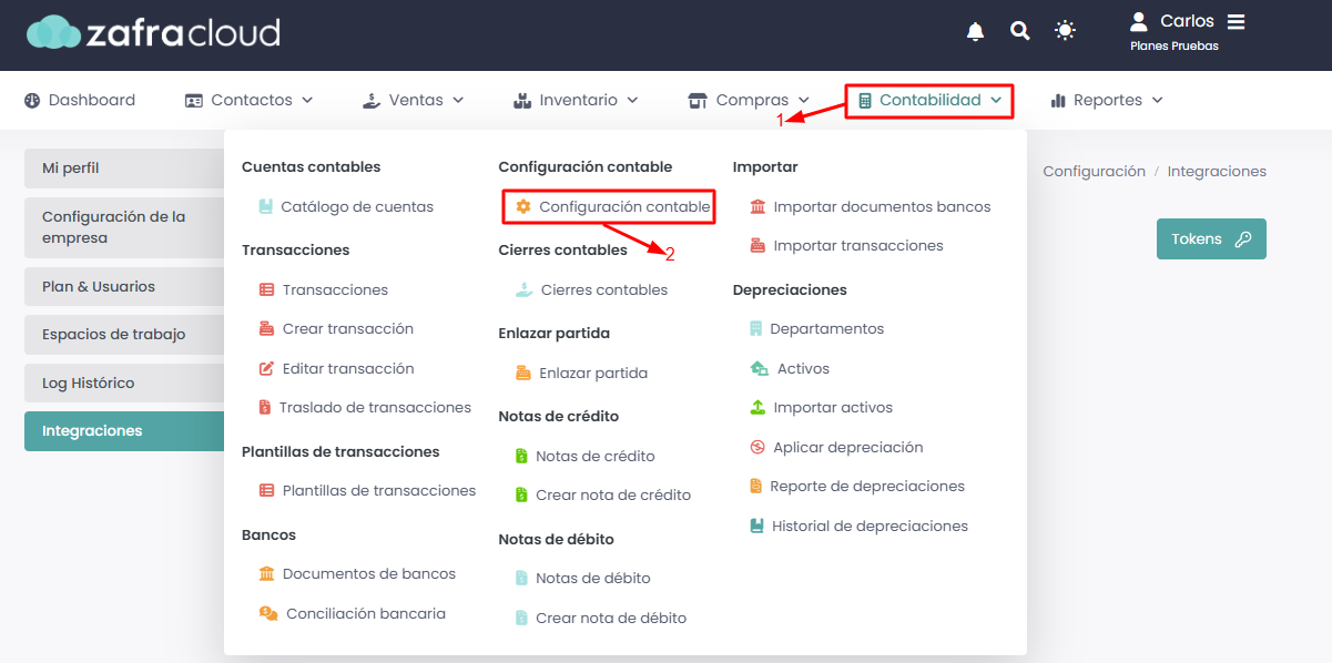 Ingresa a Contabilidad → Configuración contable.