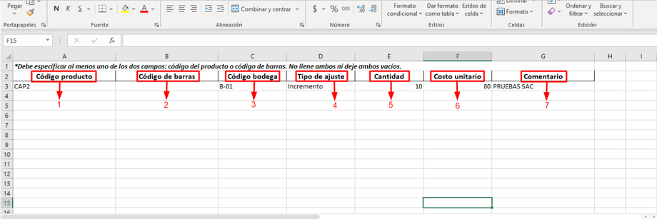 Tendremos un Excel en el cual deberemos completar la siguiente información: